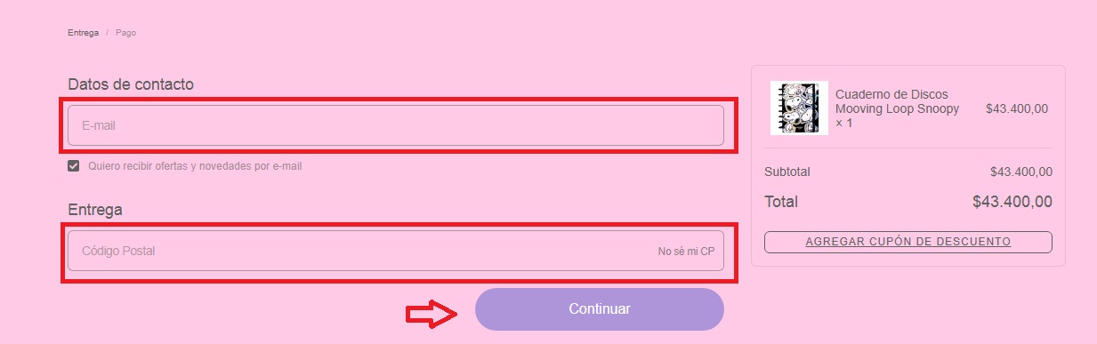 Ingresá tu email y el código postal del lugar donde querés recibir tu pedido.