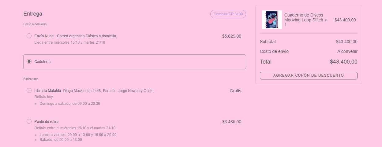 Si querés dejarnos algún comentario o aclaración sobre tu pedido, podés hacerlo en el recuadro de “Notas del pedido”.